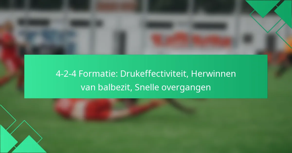 De 4-2-4 formatie verhoogt de effectiviteit van drukzetten aanzienlijk door een gebalanceerde structuur te bieden die een snel herstel van het balbezit vergemakkelijkt. Deze formatie stelt teams in staat om druk uit te oefenen op tegenstanders terwijl ze tactische flexibiliteit behouden, waardoor snelle overgangen van verdediging naar aanval mogelijk zijn.