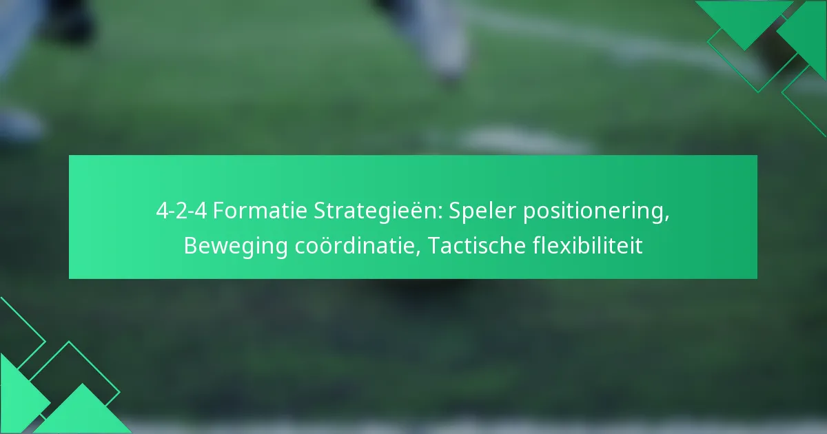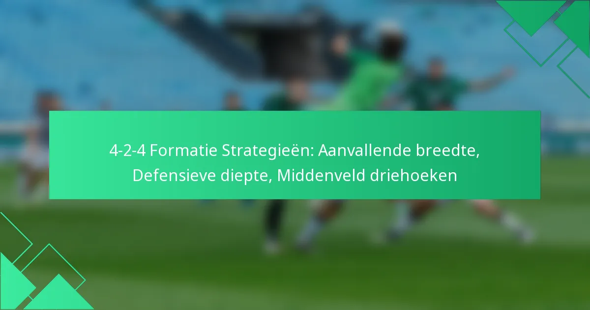 De 4-2-4 formatie is een dynamische opstelling met vier verdedigers, twee middenvelders en vier aanvallers, die een balans vindt tussen offensieve agressie en defensieve soliditeit. Effectieve coördinatie van bewegingen tussen spelers is essentieel voor het creëren van scoringskansen, terwijl een robuuste defensieve structuur wordt gewaarborgd. Bovendien stelt tactische flexibiliteit binnen deze formatie teams in staat om hun strategieën aan te passen op basis van de dynamiek van de wedstrijd en de kenmerken van de tegenstander, wat hun algehele prestaties verbetert.