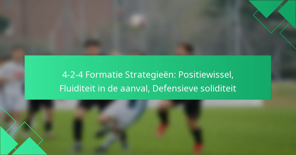 Positionele wisseling in de 4-2-4 formatie houdt in dat spelers regelmatig van positie wisselen om dynamische aanvallende kansen te creëren en defensieve soliditeit te behouden. Deze strategie verhoogt de fluiditeit in het spel, waardoor teams zich snel kunnen aanpassen aan veranderende spelsituaties.