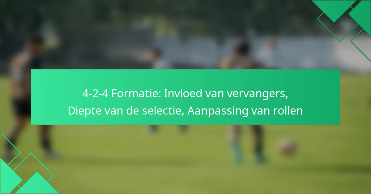 De 4-2-4 formatie is een dynamische tactische opstelling in het voetbal die een sterke aanvallende aanwezigheid in balans brengt met een solide defensieve basis. De effectiviteit van deze formatie wordt sterk beïnvloed door invallers, die frisse energie kunnen inbrengen en strategieën tijdens de wedstrijd kunnen aanpassen. Daarnaast speelt de diepte van de selectie een cruciale rol, waardoor teams hun prestatieniveau kunnen handhaven en noodzakelijke aanpassingen gedurende de wedstrijd en het seizoen kunnen maken.